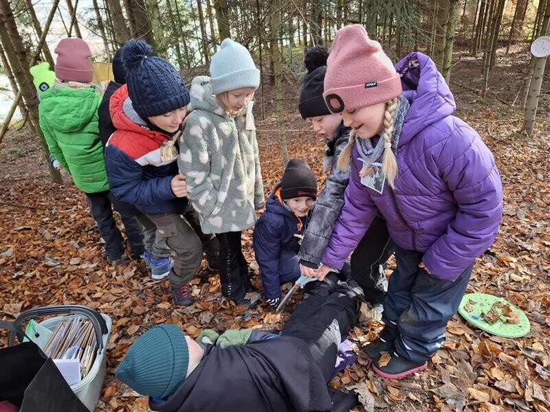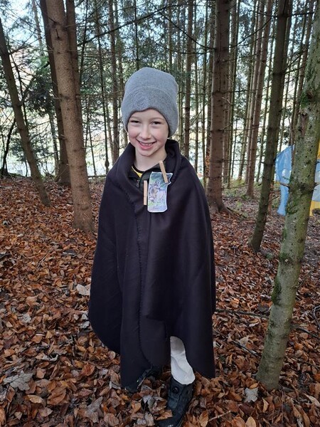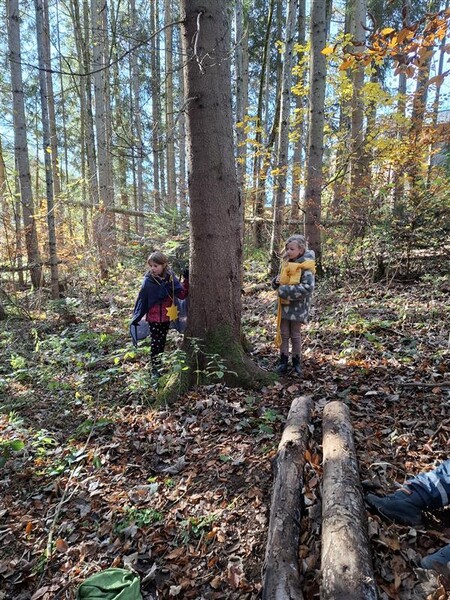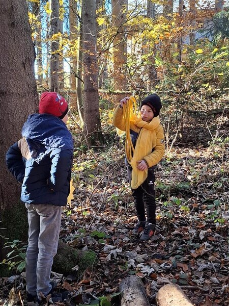 Danach wird der Waldplatz zur Bühne umfunktioniert. Rollen werden verteilt und dann heißt es: Vorhang auf für das Theaterstück, das von den Kindern im Stegreifschauspiel dargestellt wird.